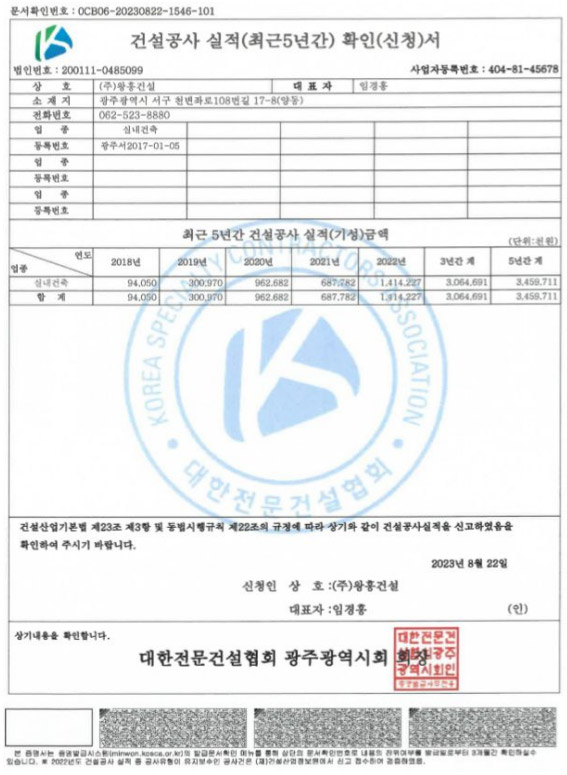 5년간실적확인서