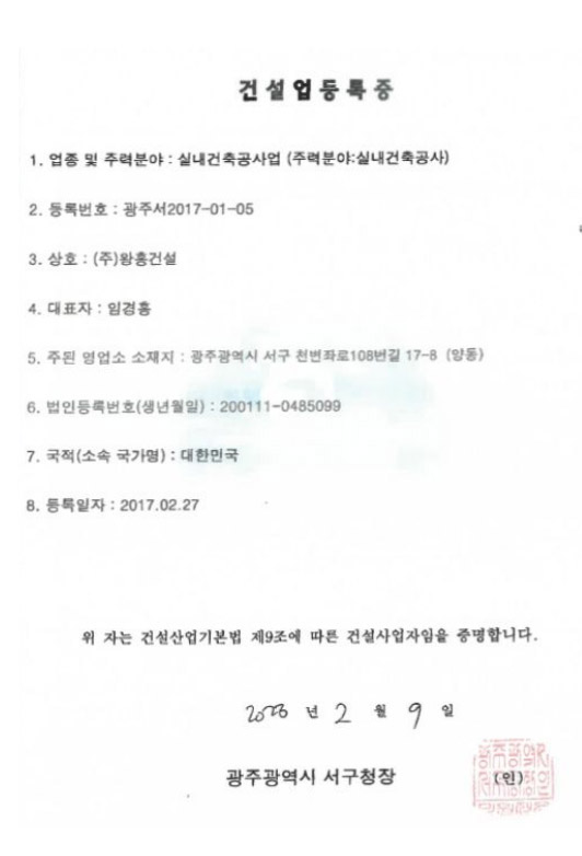 건설업등록증